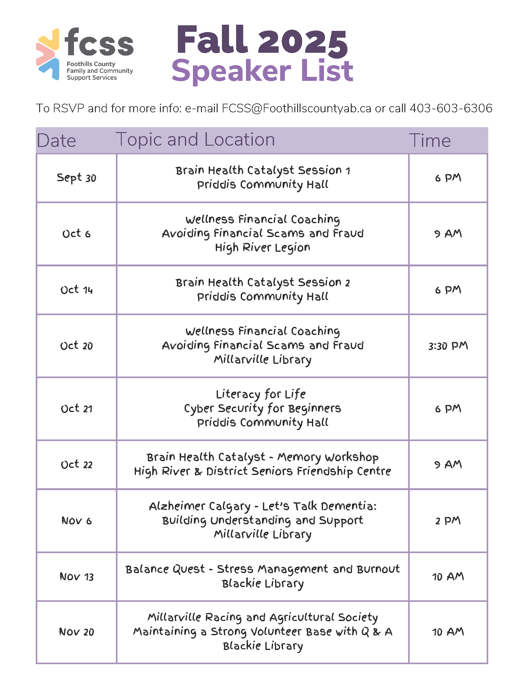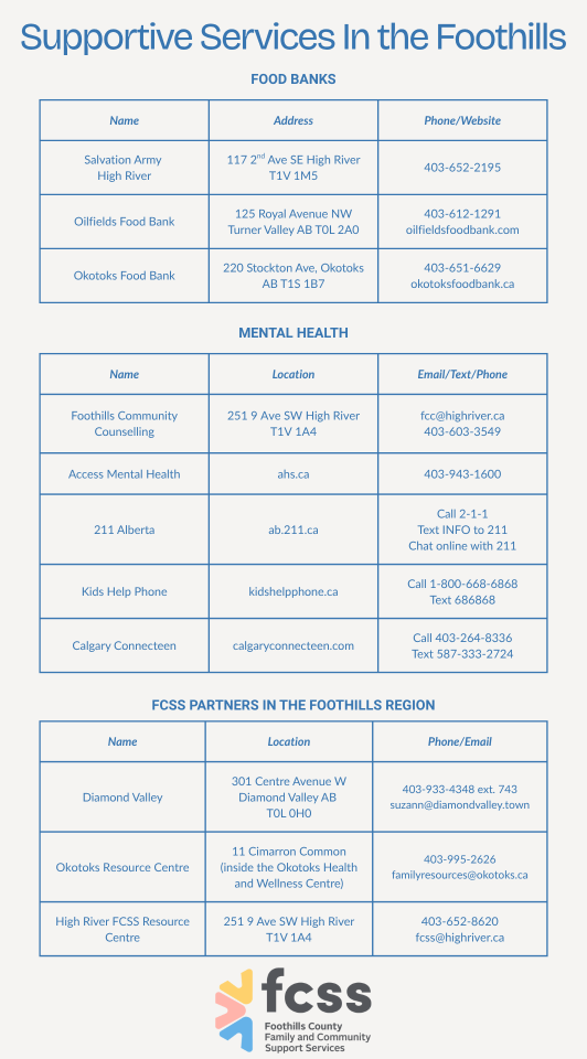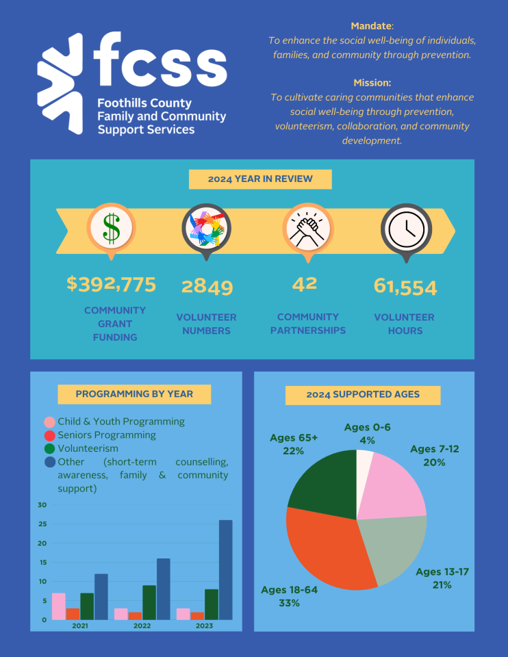 Foothills County FCSS is a member of the Provincial FCSS program. For further information on the Provincial FCSS Department, check out the Government of Alberta Family and Community Support Services website.