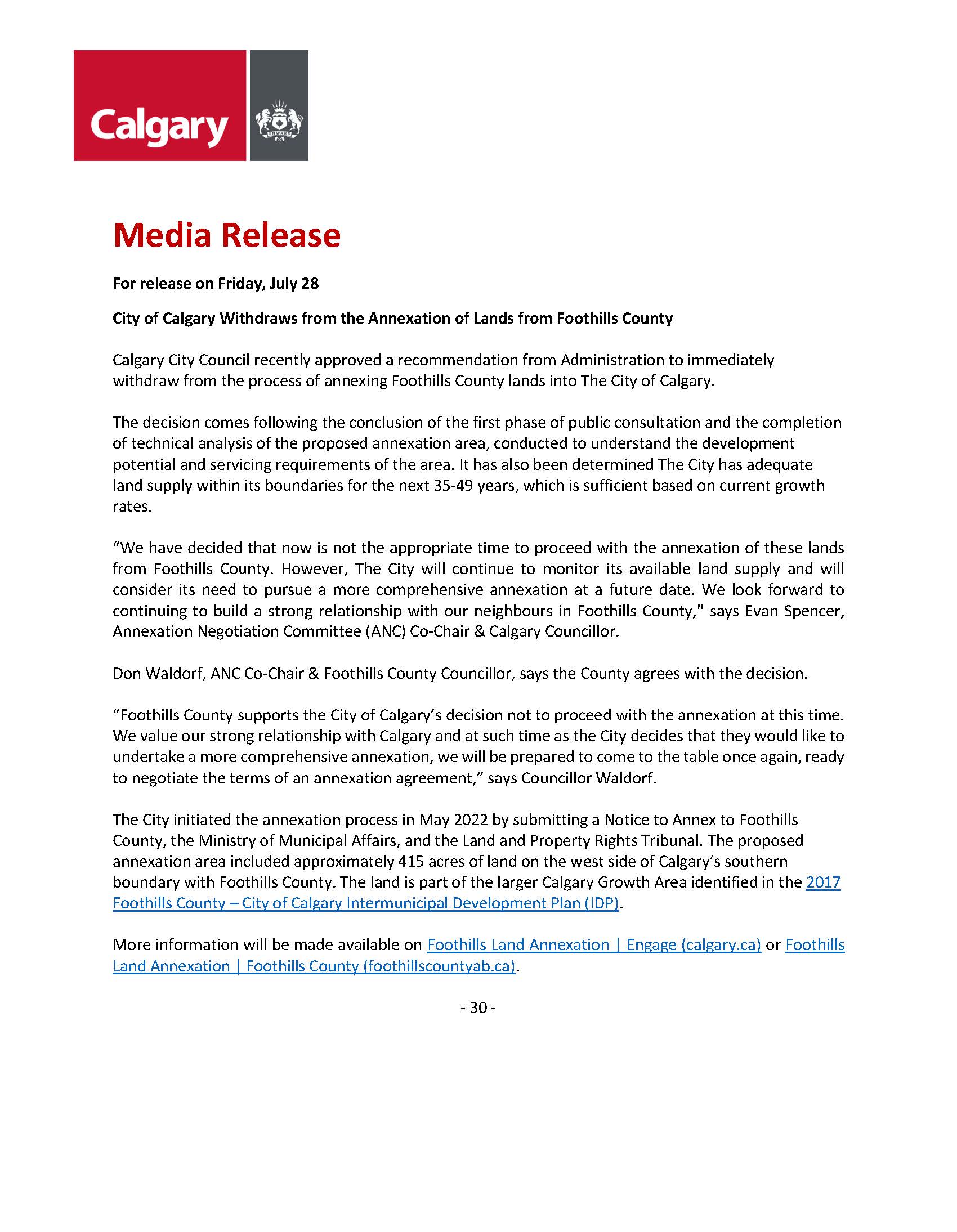 For more information visit: Foothills Land Annexation | Engage (calgary.ca) Foothills Land Annexation | Foothills County (foothillscountyab.ca)