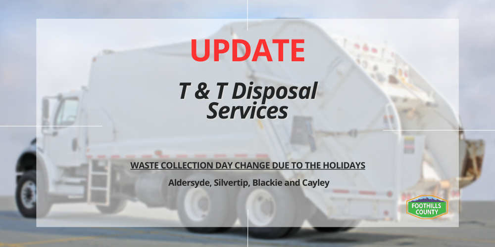UPDATE: Residents of Blackie and Cayley, please be advised that T & T Disposal will collect waste TOMORROW December 24, 2024 beginning at 7 AM.